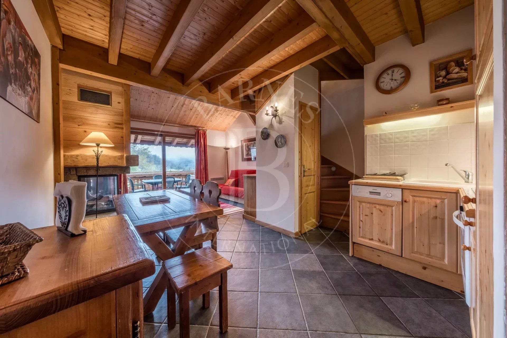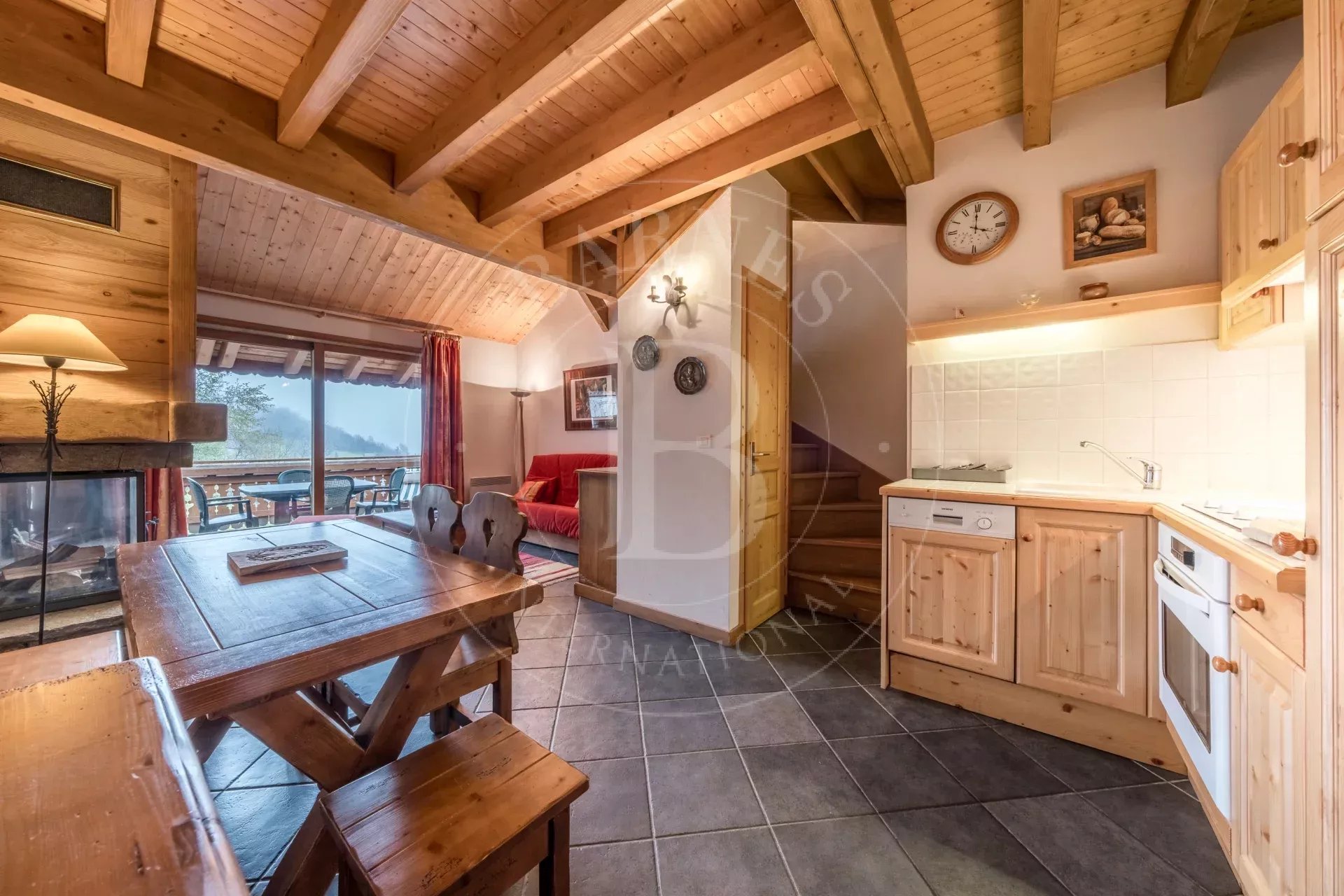 Ideally located in Méribel Village, just 200 metres from the ski slopes, this elegant duplex offers a rare blend of authentic alpine charm and comfort.