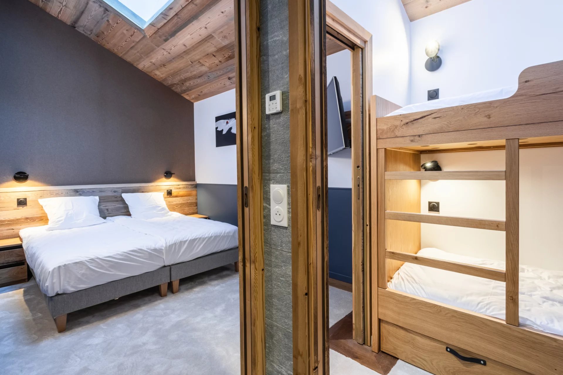 - Suite familiale avec chambre double + cabine connectée : Lit King Size ou twin et lits superposés
